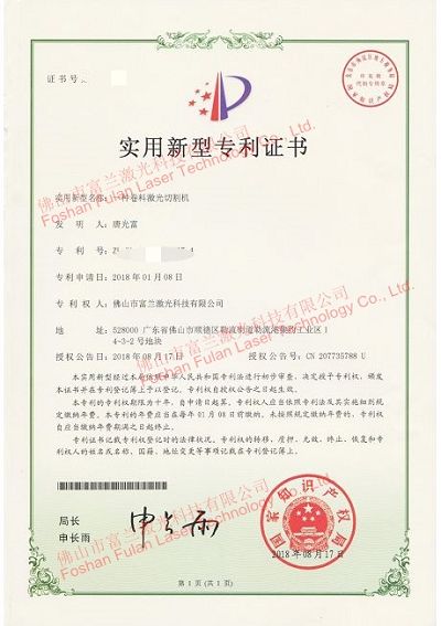 一种卷料激光切割机 专利证书